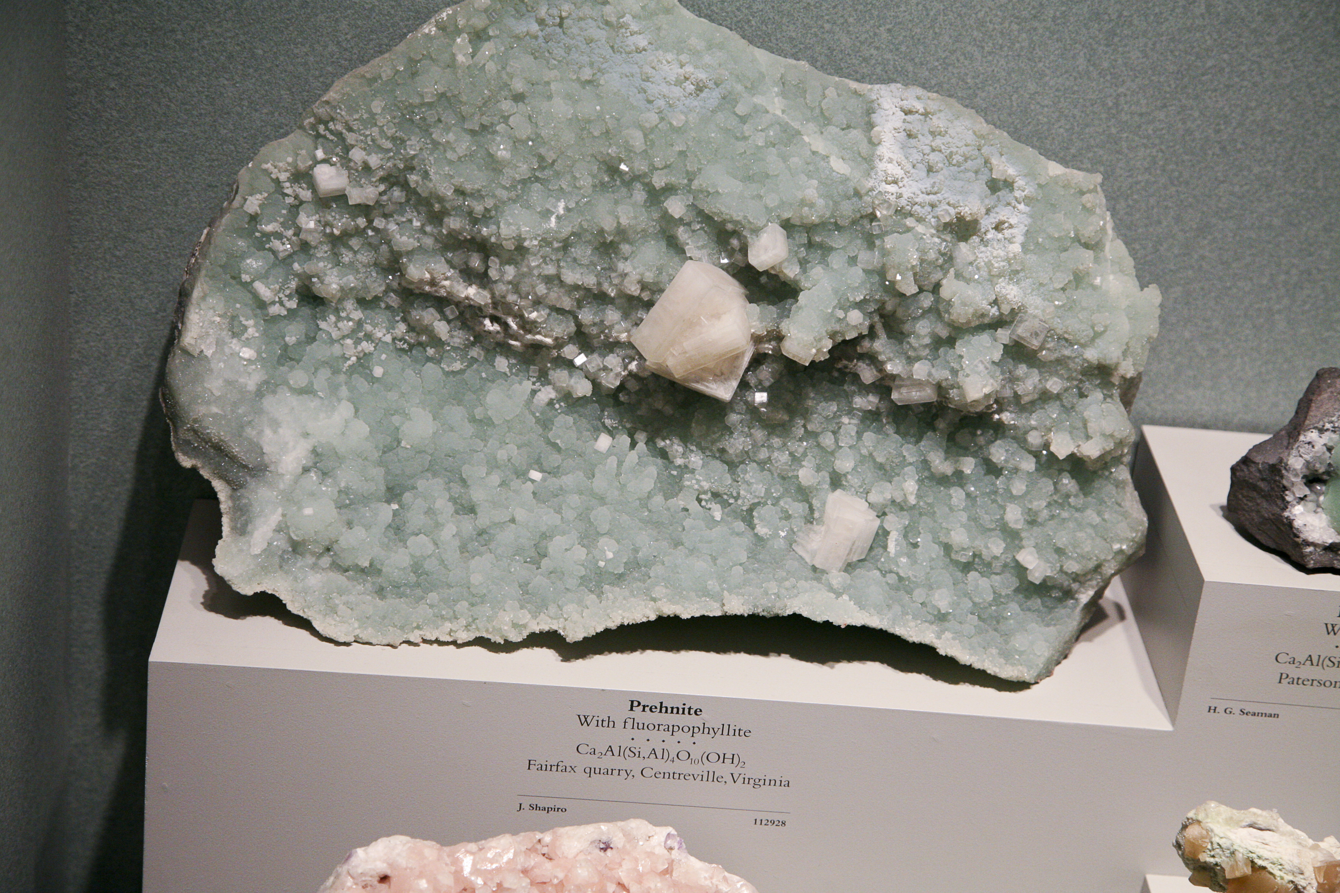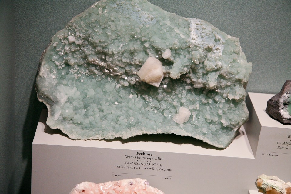 My father-in-law, Dr. Joel Shappirio, has a rock on display at the Smithsonian Natural History Museum. When I say rock, I mean apophyllite prehnite. You know what I’m talking about right? Don’t worry. I was completely clueless on that one too. Let’s just say, I thought I was looking for a rock, but when we finally found it, it looked like a big green and white crystal. It’s far from being the kind of rock I was looking for. So the story goes that my father-in-law, who grew up in Washington, D.C., and studied mineralogy and petrology in college, traded this apophyllite prehnite for another fancy rock, with the Smithsonian. They put it on display and after he passed away, my mother-in-law wrote a letter to the Smithsonian asking them to put his name on it. And so they did. And here it is: