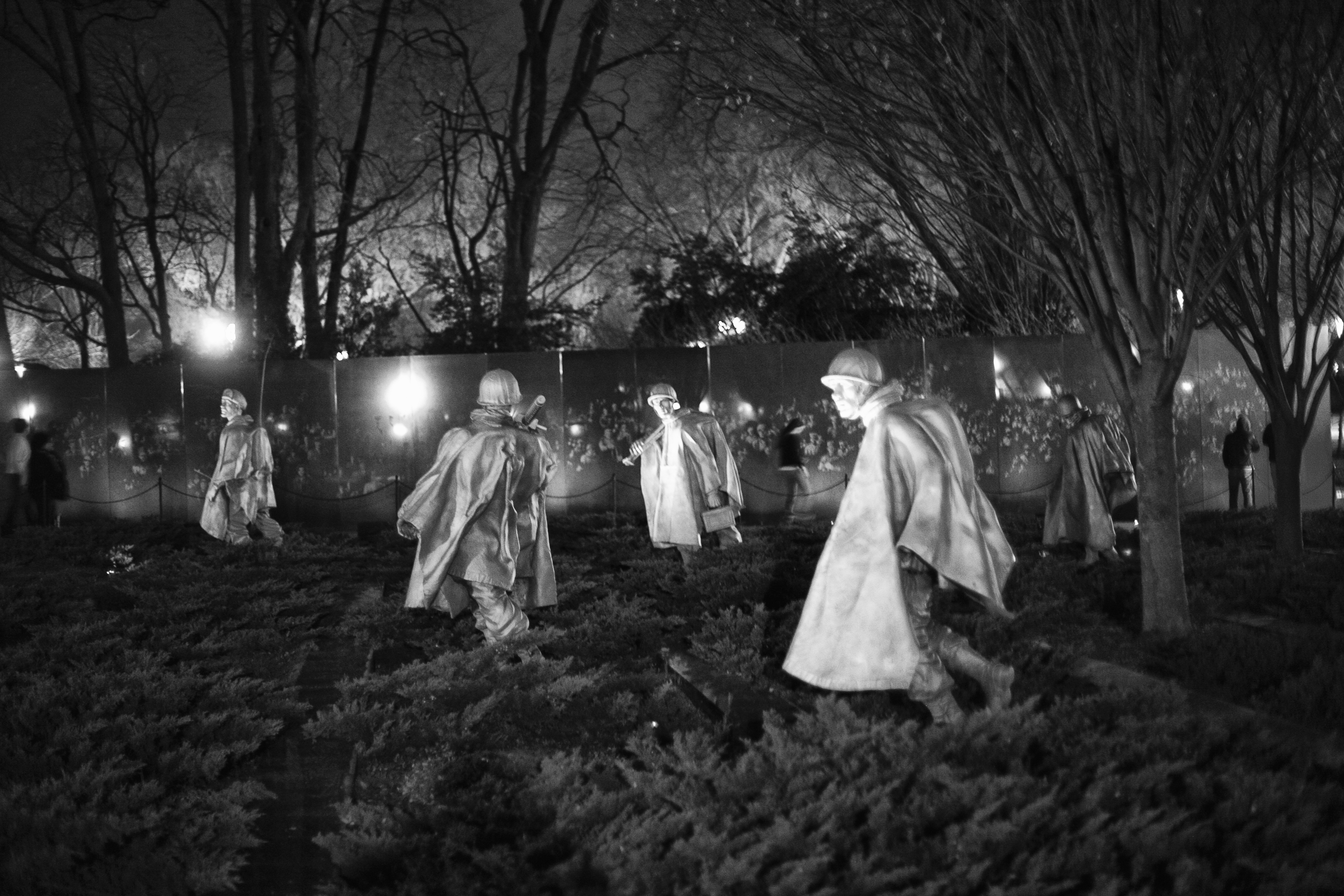 Before dinner, we took a walk over to the Lincoln Memorial for Paul to get some photo opportunities. The memorials and monuments in Washington are beautifully lit at night. In my opinion, this is the time to see them. We also went to the Korean War Veteran’s Memorial which is unlike any memorial I’ve ever seen. Nineteen sculptures of soldiers in the grass lit dimly from below.