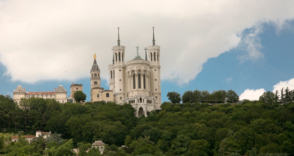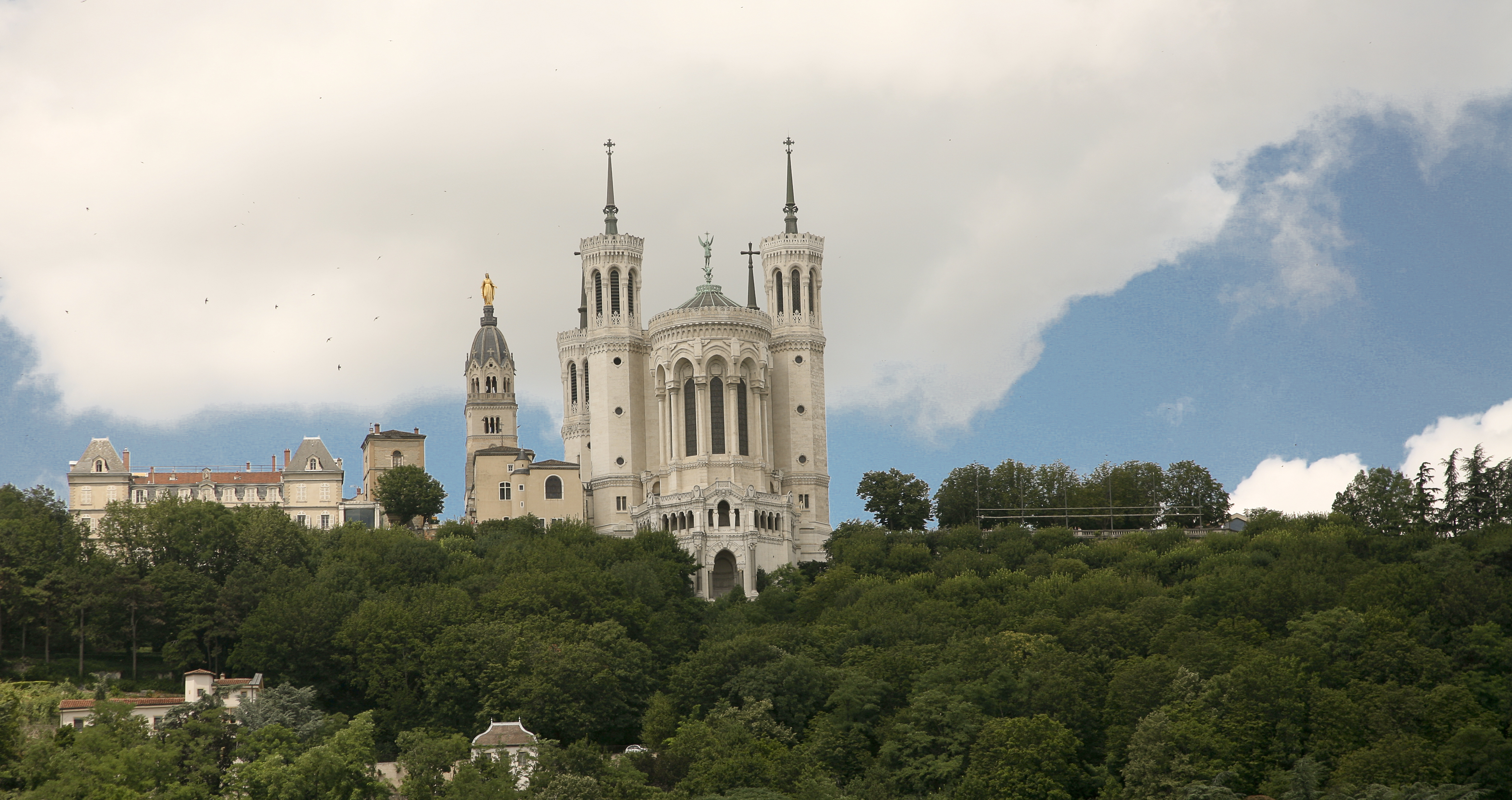 We returned to Old Lyon the next morning, bought tickets for the funicular, and rode to the top of the hill to see the church. It was enormous and beautiful, but the best part was behind it where you could look out over the city of Lyon. A grand view of a lovely city.