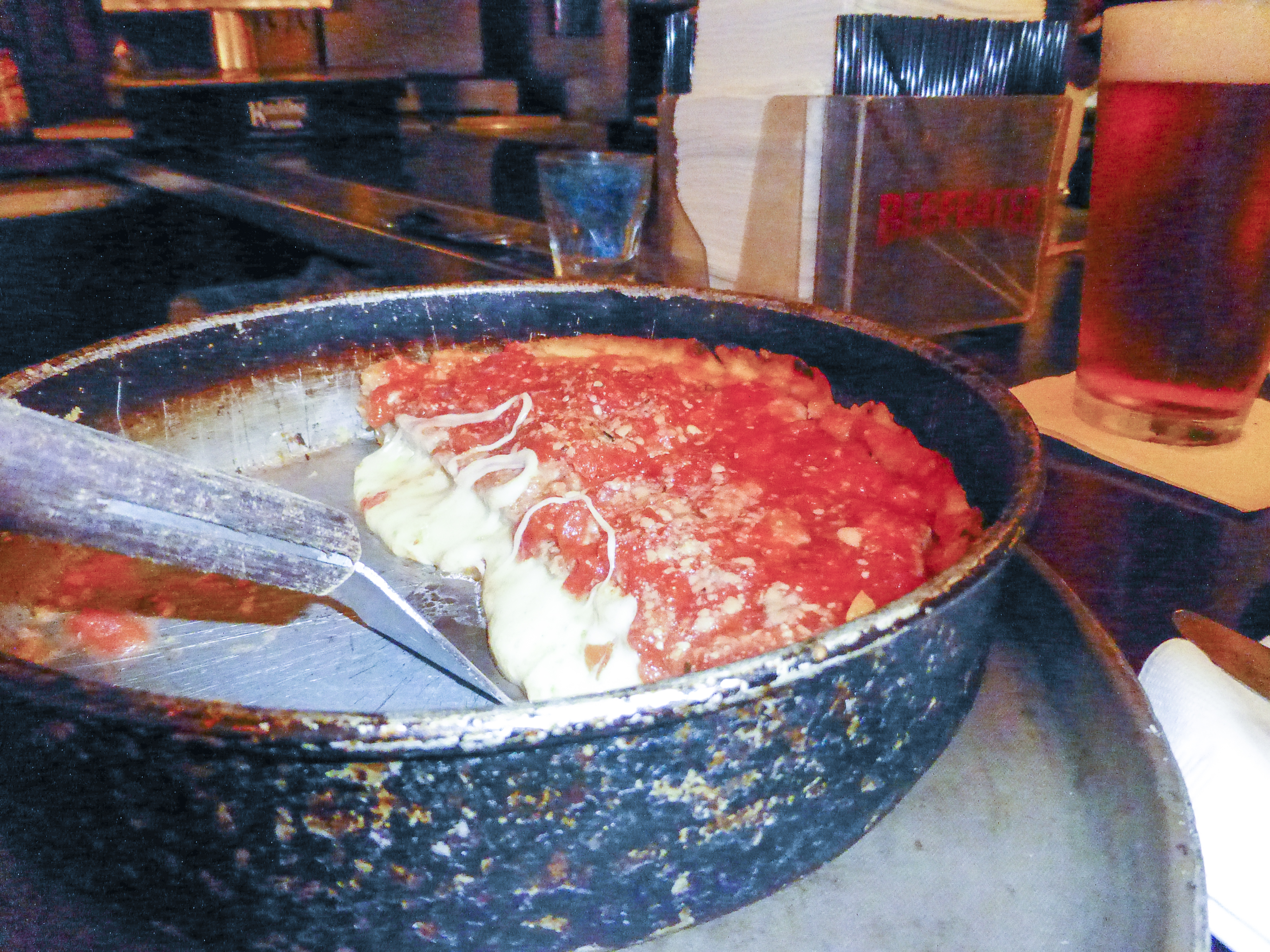 For lunch on Sunday, we gave the deep dish pizza at Lou Manalti’s a try. We went for the traditional Chicago style deep dish for two. I’m pretty sure it was enough food for ten and I’m not sure it fit our definition of pizza. It was a solid brick of cheese, tomatoes, and sausage and it wasn’t very flavorful. It definitely did not even come close in comparison to my heavenly hot dog and I was filled with some regret that we didn’t return to Wrigley for lunch instead.