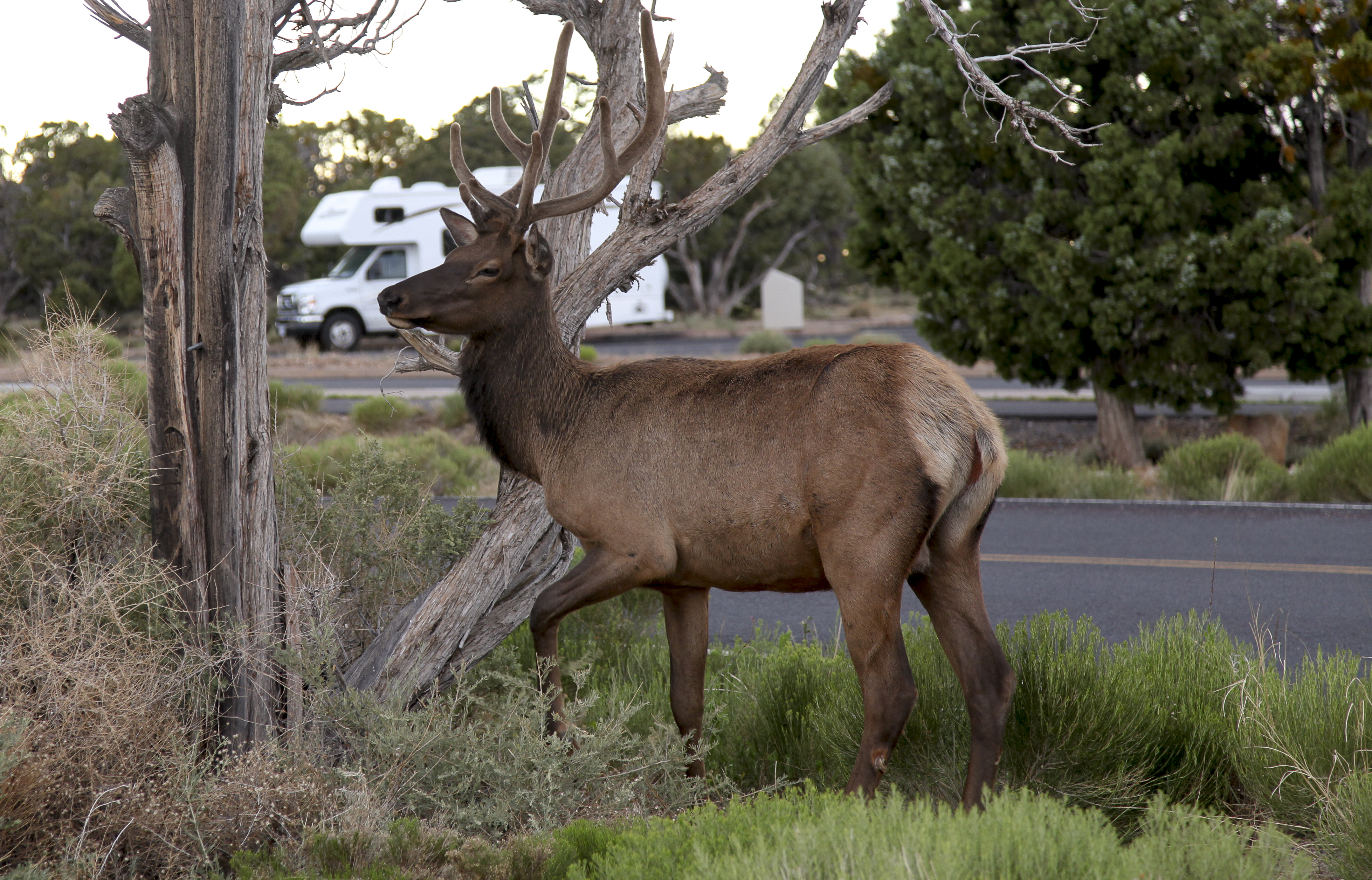 Our recommendations for viewing the magnificent Grand Canyon are simple. There are two campgrounds on the Southern Rim, one that takes reservations (Mather) and one that does not (Desert View). Mather Campground is down in Grand Canyon Village. This campground provides all the luxuries of home-a large laundry facility, showers, and even a grocery store nearby. While this may all seem tempting and preferable, skip it. Instead, drive 20 minutes east of Mather to Desert View. During your drive you may be tempted to stop several times to marvel at the scenery, but save this for after you reserve your first-come, first-serve campsite. There are no showers here, no Fluff and Fold, and no Stop and Shop, but you will see the Grand Canyon, including its wildlife, with little interruption. In the evenings, stroll over to the rim to sit on the edge and listen to the scheduled ranger talks. They are really quite interesting and open your mind to the art and culture that the Grand Canyon has inspired over time. Once the day-trippers make their way out of the park, the Grand Canyon is yours. At night, the sky is the blackest you’ve ever seen and the stars are brighter than you can imagine. In the morning, before the tourists arrive, it is just you and the elk. They get so close you can practically touch them, but we don’t advise trying to do so.