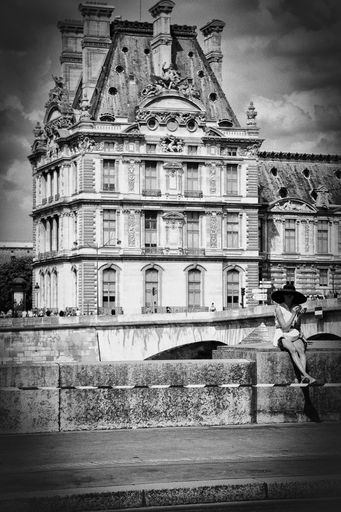 Of all of the photos that Paul has taken over the years, this is one of my favorites. The lady in the hat, sitting by the Seine in front of the Louvre.