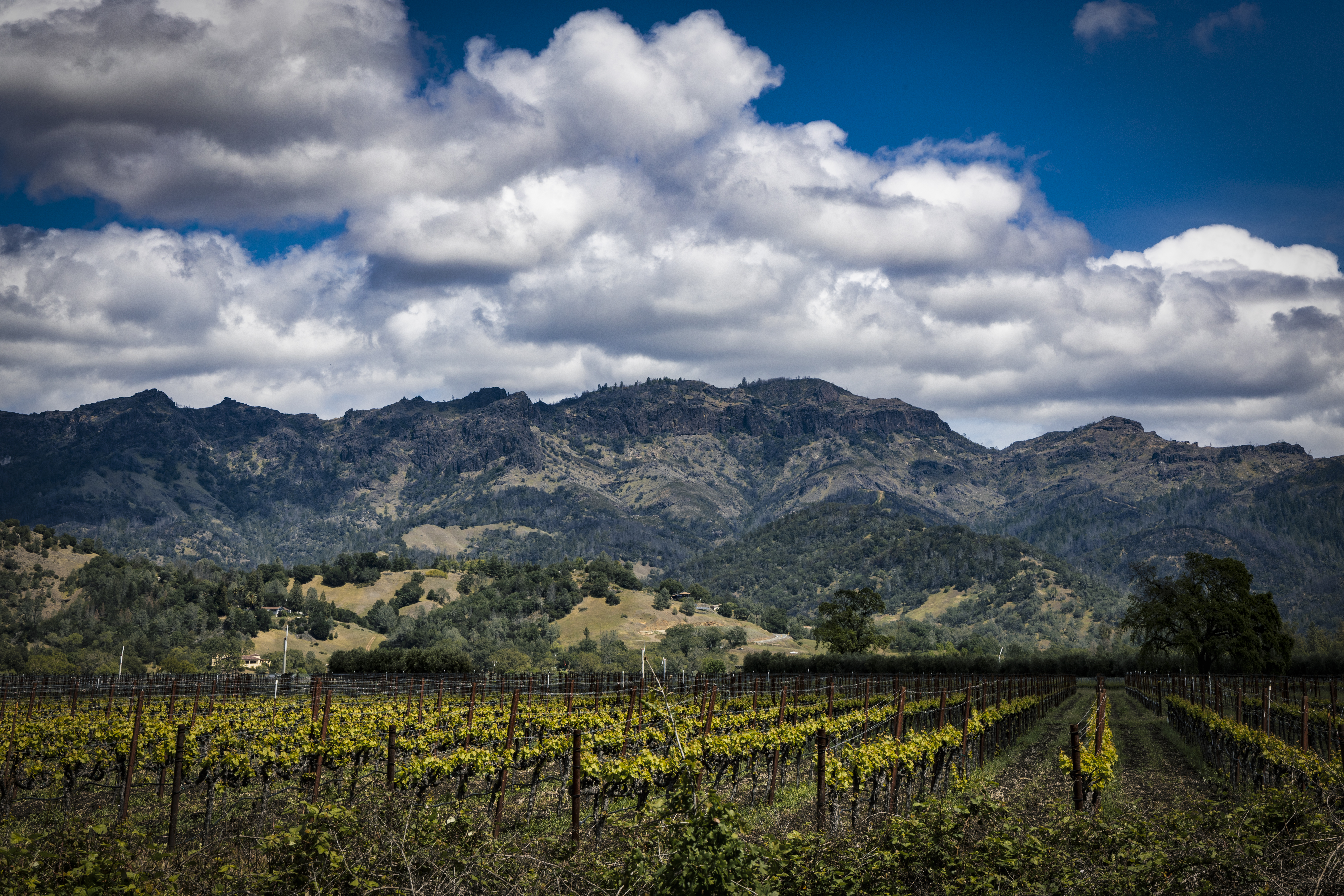 The weather didn’t cooperate much on this trip. Usually, the bright sunshine lights everything up in Napa Valley. Unfortunately, it was cloudy and cool for most of our visit. It didn’t stop us from taking a rest and snapping some photos of the clouds as they floated above the vines.