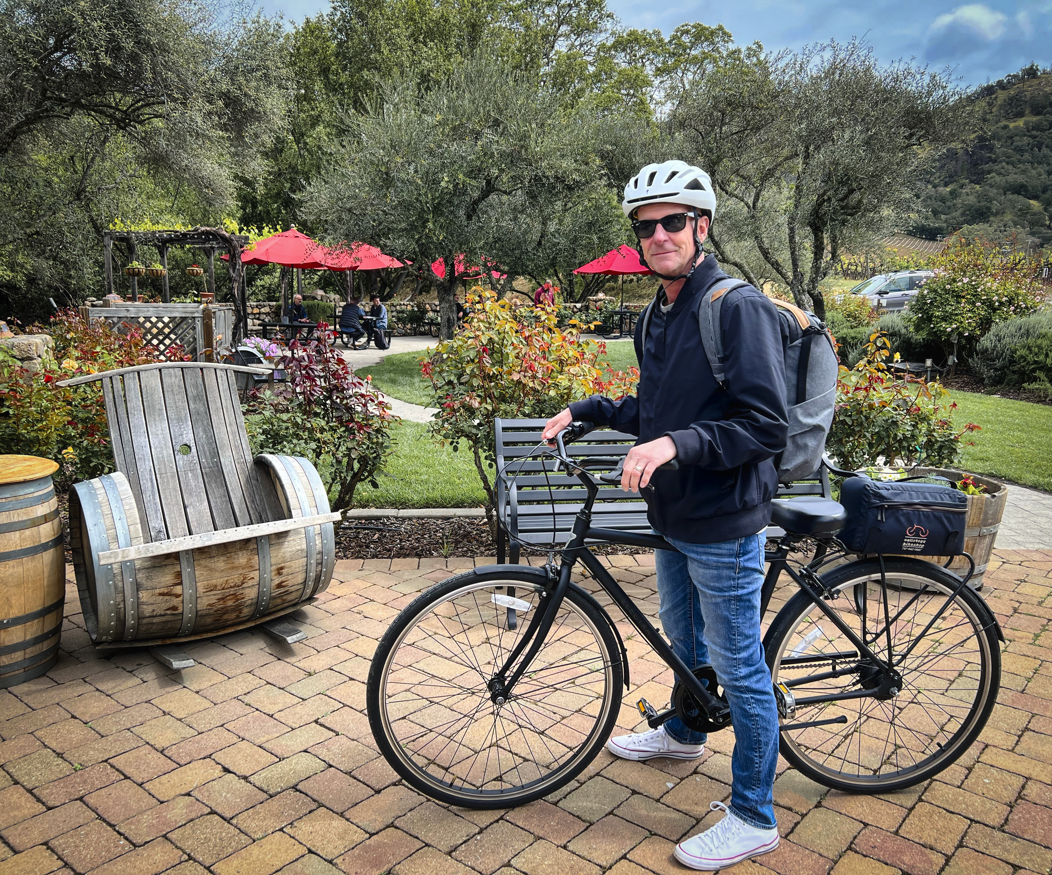 We secured a couple of bike rentals with the Calistoga Bike Shop and opted for the self-guided wine tour with two or three tasting options. For $84.99 per person, we got bikes, helmets, a detailed map, and tasting reservations at two wineries. You can taste at three wineries for the same price, but we don’t advise it. Two is just enough to make for a leisurely day and a picnic lunch without feeling rushed.