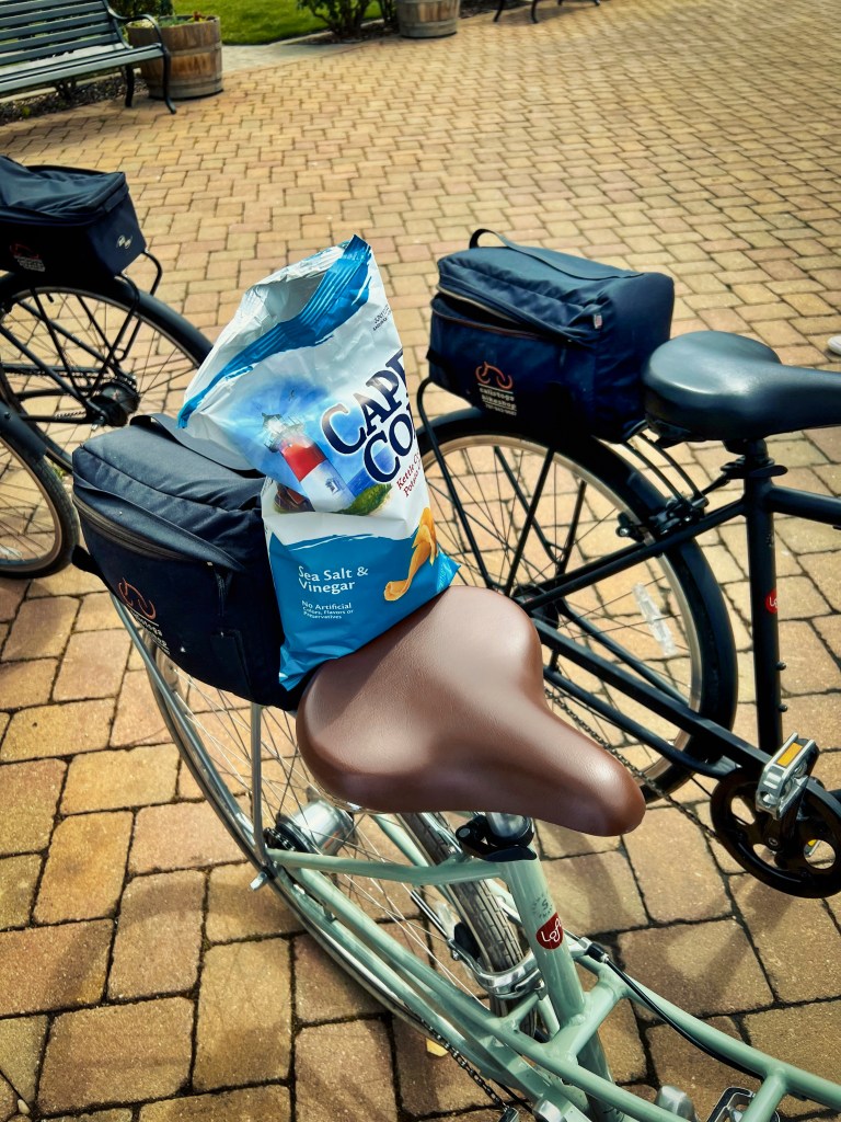 We picked up our lunch on our walk to the bike shop and stowed it in these perfectly sized panniers on the back of our bikes. The turkey sandwich from Bella Bakery was, quite honestly, the best turkey sandwich we’ve had in years. Thin sliced turkey on soft focaccia topped with blue cheese crumbles, tomatoes, and mayo. It was heavenly, and much needed after all of the calorie burn.
