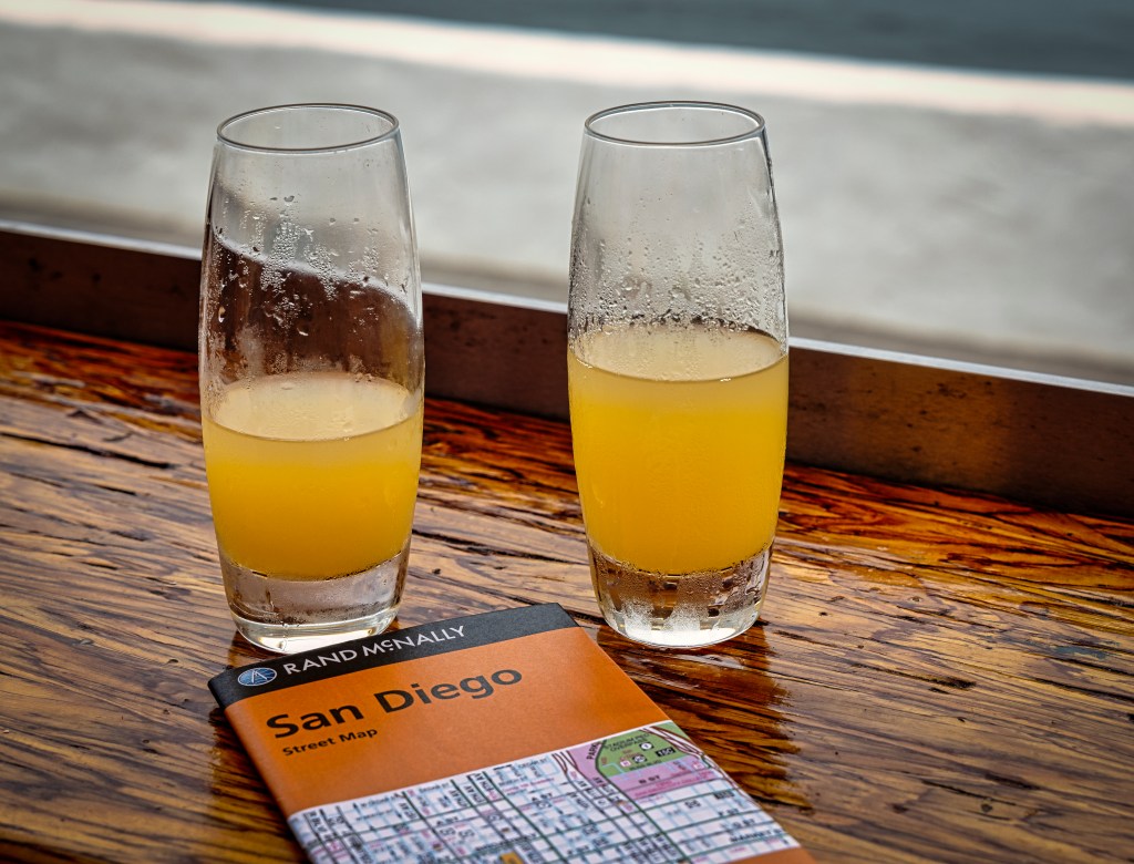 Our day of travel that started at 5AM Eastern Time would take us until 10PM Pacific Time-10:01PM to be exact. That is to the minute of when we actually landed on bar stools at the Marriott Marquis San Diego Marina, ravenous for a proper meal. Thankfully, the kitchen closed at 10PM, but a kind bartender kept it open until 10:01 to get our dinner order through.