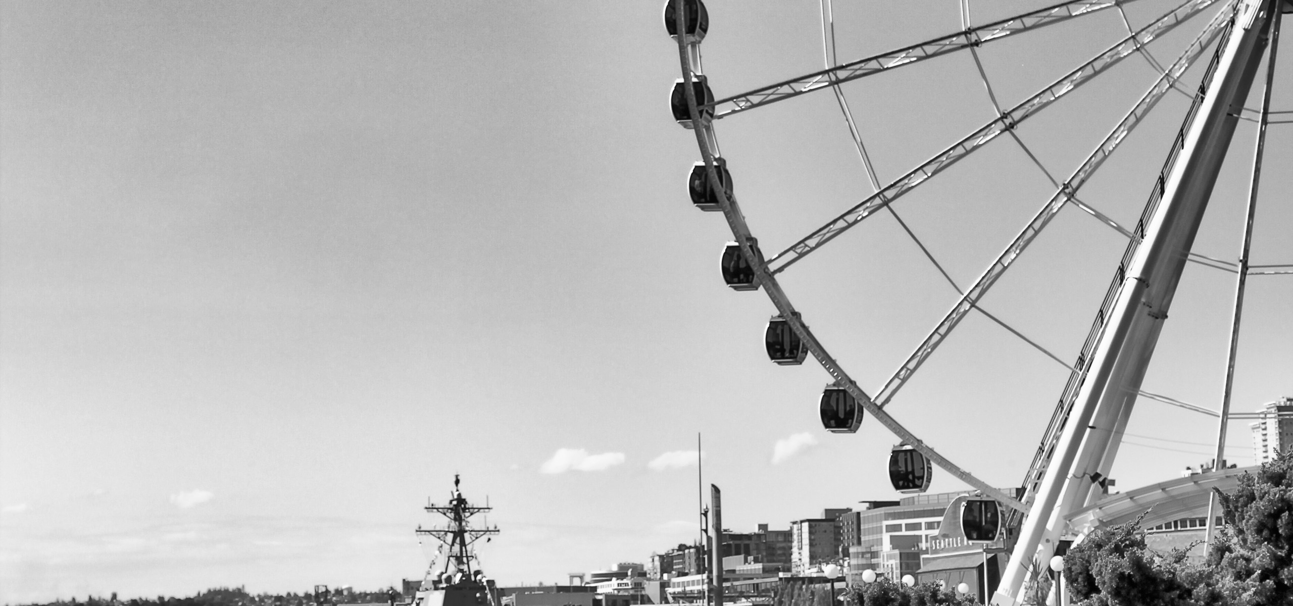 I long for this. Sitting by the water in short sleeves, reading a book by the water with a huge Ferris wheel looming over me. It’s Seattle in August. It could be a guidebook to Japan or a bartender’s manual of cocktails. Perhaps it’s his own novel. Whatever it is, this man is going places.